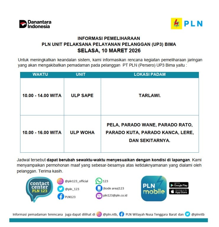 Kota Bima, Kahaba.- PLN UP3 Bima memastikan pasokan listrik tetap aman dan andal selama agenda Lentera Ramadhan dalam rangka kunjungan…