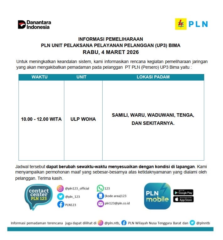 Kota Bima, Kahaba.- Badan Meteorologi, Klimatologi, dan Geofisika (BMKG) melalui Stasiun Meteorologi Zainuddin Abdul Madjid (ZAM) mengeluarkan peringatan dini, terkait…