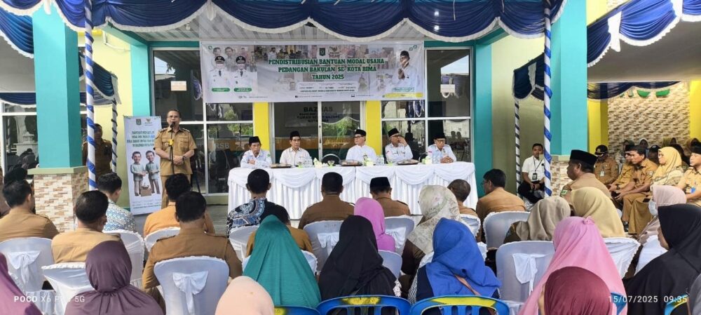 Kota Bima, Kahaba.- Sebagai bentuk kepedulian terhadap pelaku usaha kecil, Badan Amil Zakat Nasional (Baznas) Kota Bima menyalurkan bantuan modal usaha untuk 205 pedagang bakulan di 41 kelurahan, Selasa 15 Juli 2025. Kegiatan ini digelar di halaman Rumah Sehat Baznas (RSB) Kota Bima.