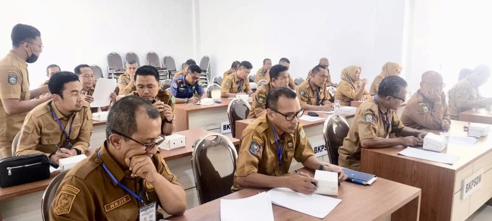 Peserta diberikan waktu sekitar 15 menit untuk menyusun makalah terkait strategi, program kerja, serta ide pengembangan OPD berdasarkan visi misi kepala daerah.