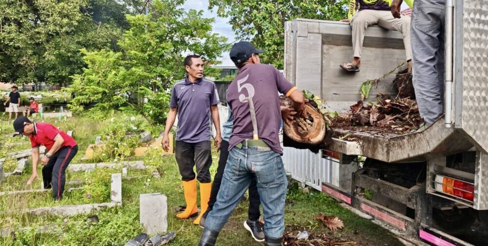 Kegiatan yang dipimpin langsung Camat Idham ini merupakan upaya untuk terus mewujudkan program Bersih, Indah, Sehat, dan Asri (BISA) dengan membersihkan tumpukan sampah plastik, kayu, hingga dedaunan yang memenuhi area pemakaman tersebut.