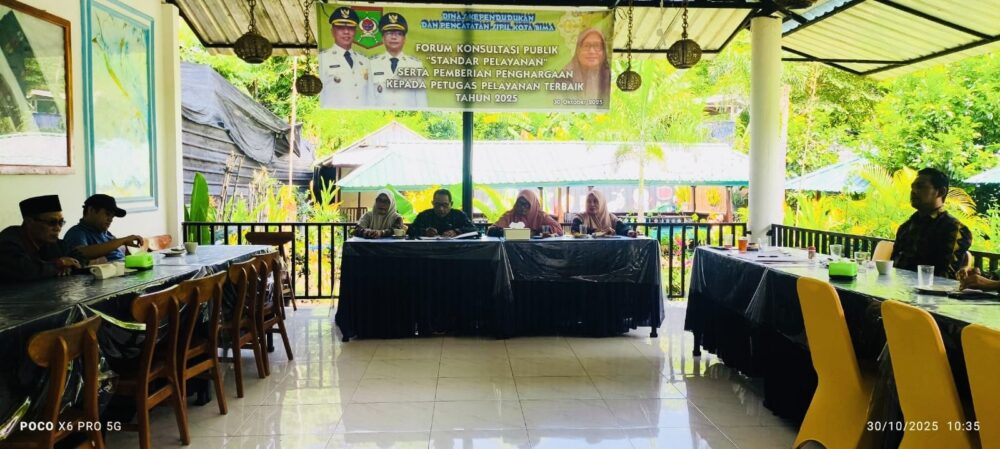 Kota Bima, Kahaba.- Dinas Kependudukan dan Pencatatan Sipil (Disdukcapil) Kota Bima menggelar Forum Konsultasi Publik (FKP) Standar Pelayanan, Kamis 30 Oktober 2025, di Pondok Kayuan Kelurahan Santi.