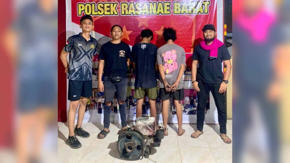 Kota Bima, Kahaba.- Dua remaja pelaku pencurian mesin diesel molen yang kerap meresahkan warga dibekuk Tim Opsnal Polsek Rasanae Barat (Rasbar) bersama barang bukti, Jumat 22 Agustus 2025 sekitar pukul 19.30 Wita di Lingkungan Kampung Sumbawa, Kelurahan Tanjung, Kecamatan Rasanae Barat, Kota Bima.