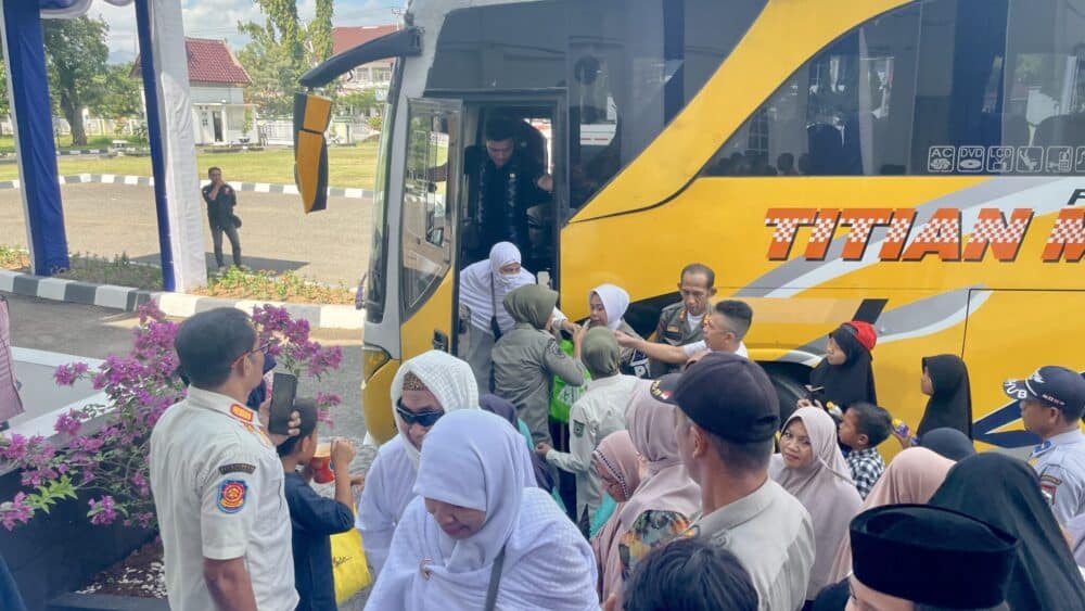 Kota Bima, Kahaba.- Suasana haru dan penuh syukur terlihat di halaman Kantor Wali Kota Bima, Kamis 26 Juni 2025, saat rombongan jamaah haji asal Kota Bima tiba kembali di tanah air.