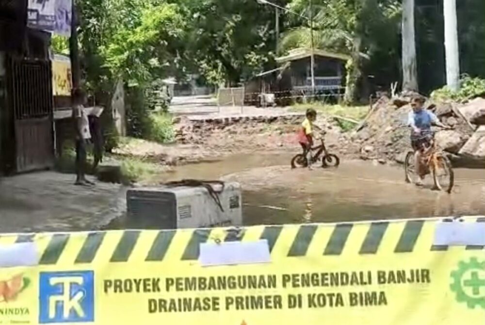 Kota Bima, Kahaba.- Proyek pembangunan pengendali banjir drainase primer di Kota Bima mulai berdampak signifikan terhadap arus lalu lintas.