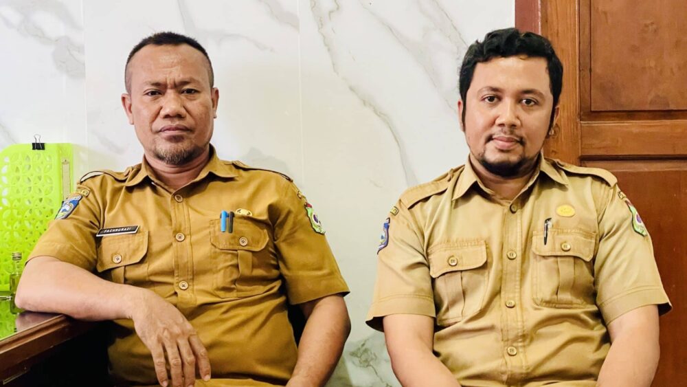 Kabid Cipta Karya Dinas PUPR Kota Bima Fachrurazi didampingi PPK Proyek Lanjutan Penataan Lapangan Serasuba Ahmad Sirajuddin. Foto: Bin