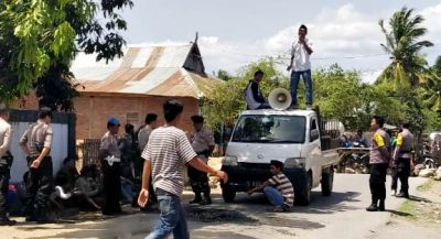 Kabupaten Bima, Kahaba.- Puluhan pemuda dan masyarakat yang tergabung dalam Aliansi Masyarakat Peduli Desa Tolouwi menggelar aksi di depan kantor Desa Tolouwi Kecamatan Monta, Senin, (2/12).