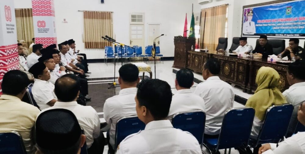Melalui BKPSDM, digelar pelantikan serta pengambilan sumpah jabatan Pimpinan Tinggi Pratama, Pejabat Administrator, dan Pejabat Fungsional di Aula Kantor Pemkot Bima.