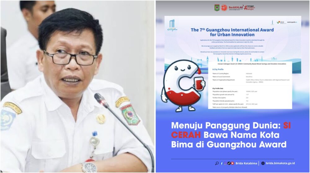 Kota Bima, Kahaba.- Kota Bima kembali menunjukkan komitmennya dalam mendorong inovasi pelayanan publik dengan secara resmi mendaftarkan inovasi SI CERAH (Celengan Darah) pada ajang internasional The 7th Guangzhou International Award for Urban Innovation. Keikutsertaan ini menjadi langkah strategis Kota Bima dalam membawa inovasi daerah ke panggung global.