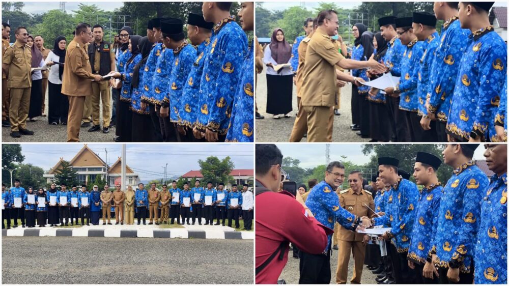 Kota Bima, Kahaba.- Sebanyak 1.198 orang CPNS dan Pegawai Pemerintah dengan Perjanjian Kerja (PPPK) di lingkungan Pemerintah Kota Bima resmi menerima Surat Keputusan (SK) Pengangkatan, dalam sebuah apel khusus yang digelar di halaman Kantor Wali Kota Bima, Senin 2 Mei 2025.